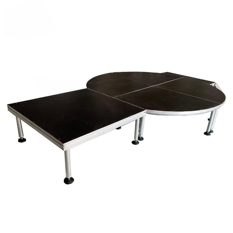 알루미늄 트러스 퀵락 이동식 무대는 0.3m에서 1.2m까지 다양한 높이로 조절 가능한 다리가 특징입니다. 이를 통해 다양한 이벤트 공간에 맞춰 무대를 조정하고 다양한 공연 요구에 부응할 수 있습니다. 플랫폼 색상 또한 검정, 빨강, 파랑, 회색 등 다양한 색상으로 맞춤 제작이 가능하여 전체 이벤트 디자인에 자연스럽게 녹아들 수 있습니다.