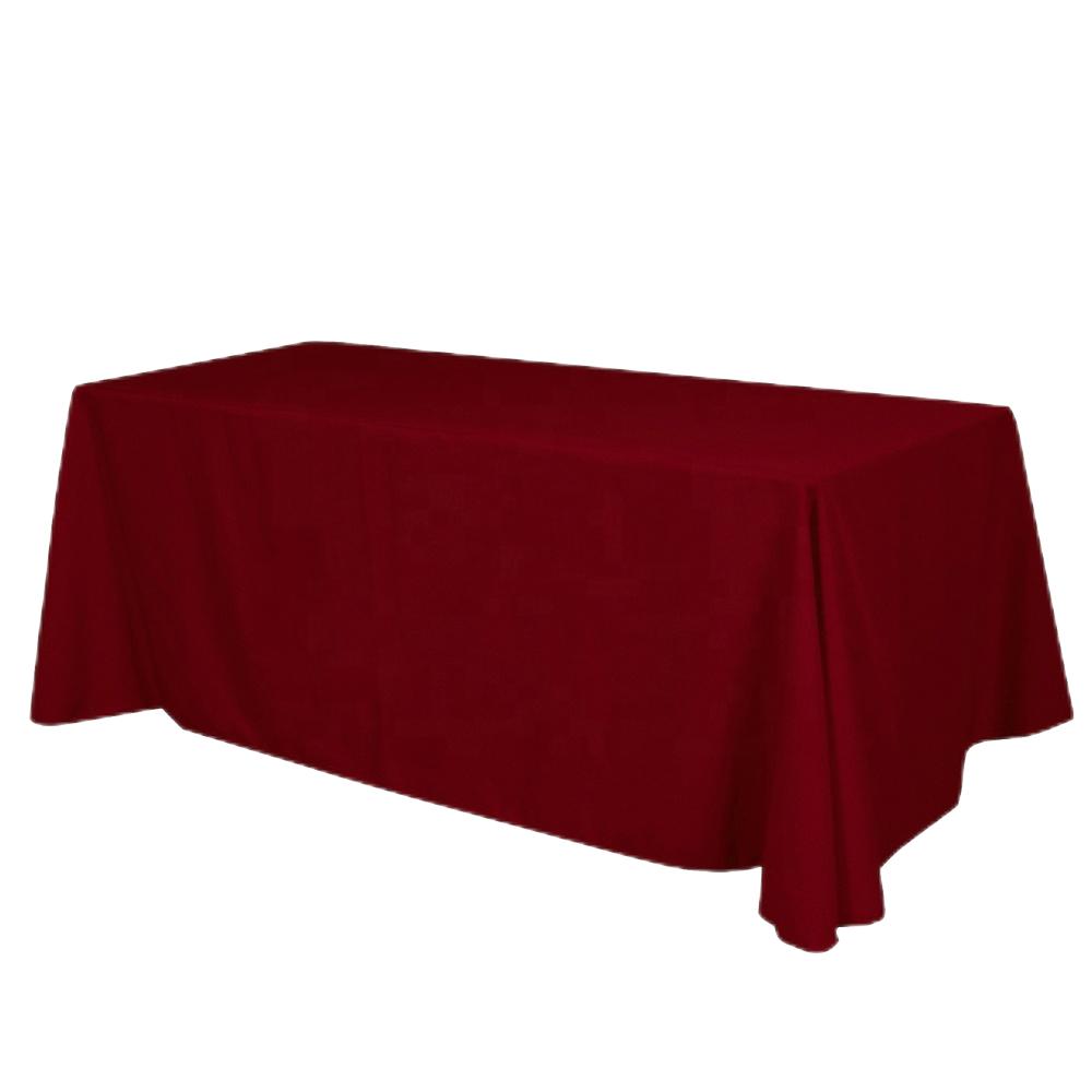 이 내구성이 뛰어나고 주름이 잘 생기지 않는 테이블 커버는 안전 규정을 충족할 뿐만 아니라 직사각형 테이블 세팅에 우아한 드레이프를 제공합니다.